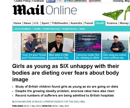 Is the media fuelling this dichotomy? Headlines like: Nearly 1 in 5 British Children are Overweight or Obese (The Guardian) are interspersed with Girls as Young As Six Dieting (Daily Mail). All confusing messages.