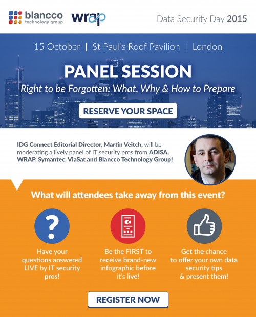 To mark Cyber Security Awareness Month the Blancco Technology Group is hosting a panel discussion on the right to be forgotten in London on 15 October.